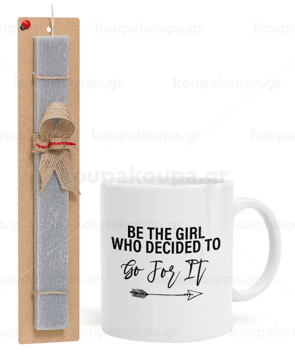 Be the girl who decided to, Easter Set, Ceramic Cup (330ml) & Easter aromatic flat candle (30cm) (GRAY)