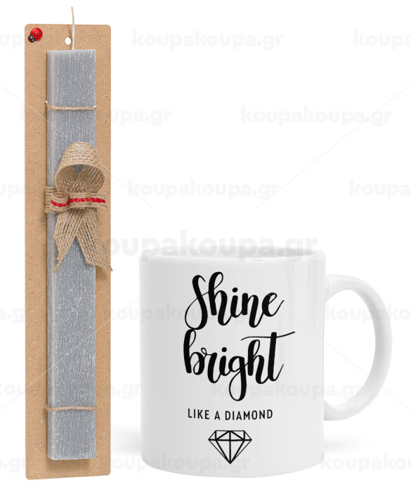 Bright, Shine like a Diamond, Easter Set, Ceramic Cup (330ml) & Easter aromatic flat candle (30cm) (GRAY)