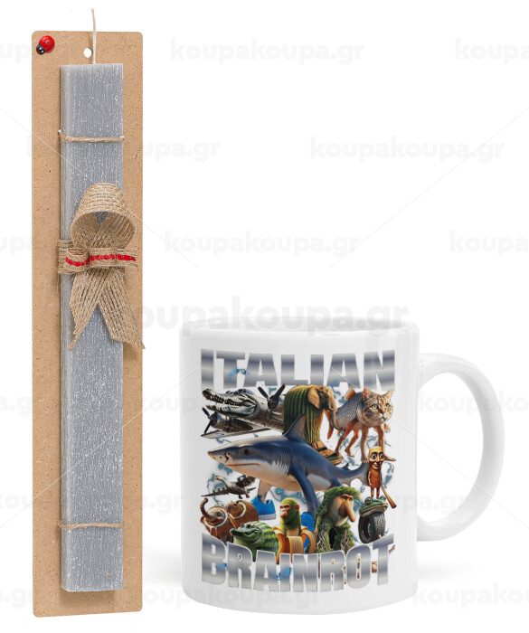 Italian Brainrot, Easter Set, Ceramic Cup (330ml) & Easter aromatic flat candle (30cm) (GRAY)