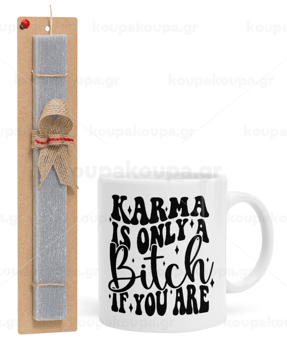 Karma is Only A Bitch if You Are, Easter Set, Ceramic Cup (330ml) & Easter aromatic flat candle (30cm) (GRAY)