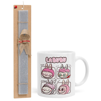 Labubu pink, Easter Set, Ceramic Cup (330ml) & Easter aromatic flat candle (30cm) (GRAY)