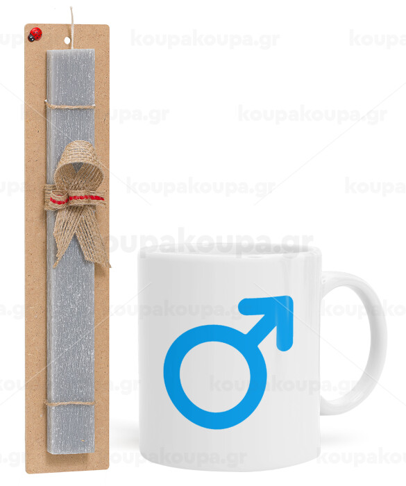 MALE, Easter Set, Ceramic Cup (330ml) & Easter aromatic flat candle (30cm) (GRAY)