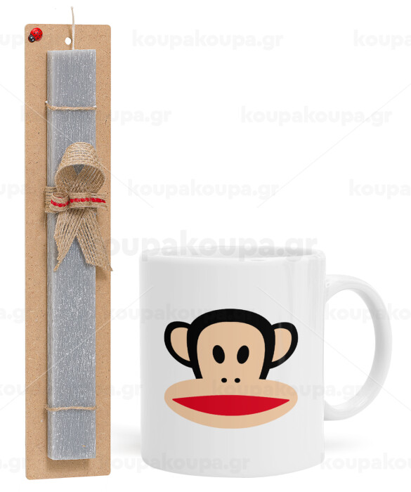Monkey, Easter Set, Ceramic Cup (330ml) & Easter aromatic flat candle (30cm) (GRAY)