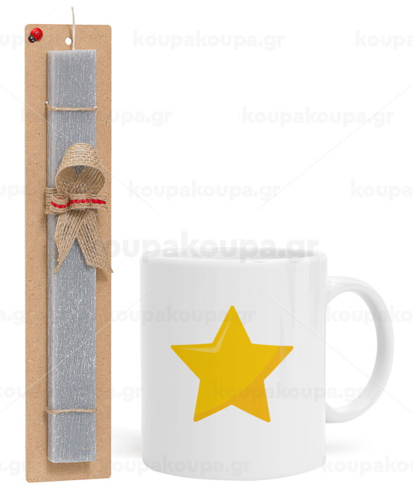Star, Easter Set, Ceramic Cup (330ml) & Easter aromatic flat candle (30cm) (GRAY)