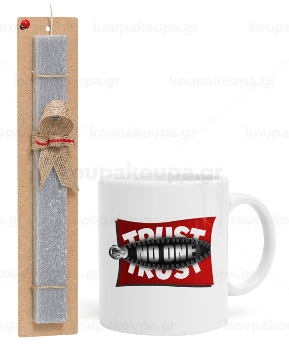 Trust no one... (zipper), Easter Set, Ceramic Cup (330ml) & Easter aromatic flat candle (30cm) (GRAY)