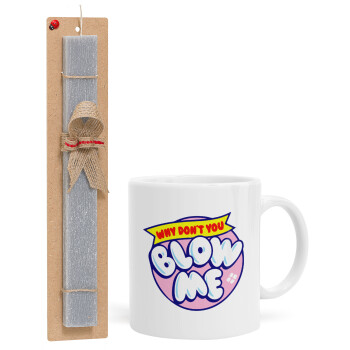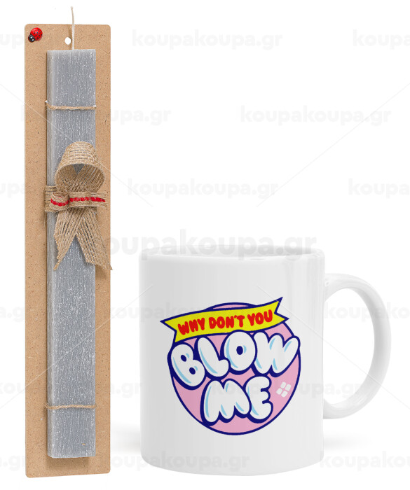 Why Don't You Blow Me Funny, Easter Set, Ceramic Cup (330ml) & Easter aromatic flat candle (30cm) (GRAY)