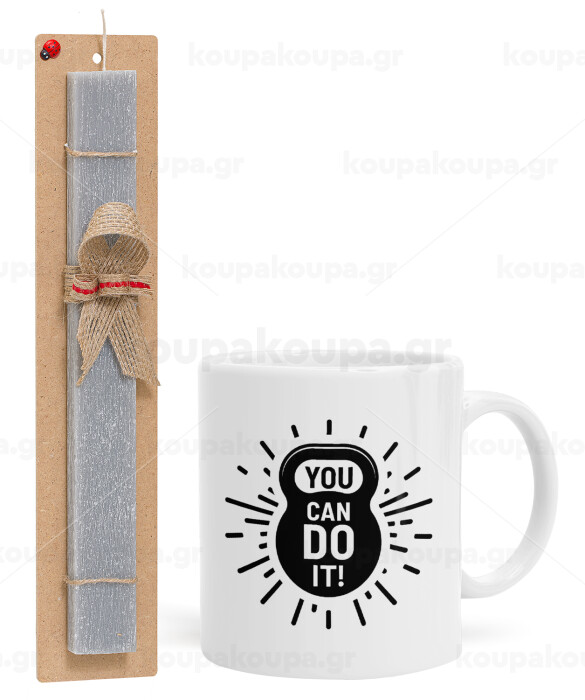 You can do it, Easter Set, Ceramic Cup (330ml) & Easter aromatic flat candle (30cm) (GRAY)