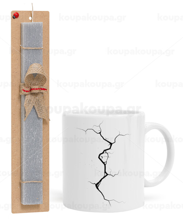 Cracked, Easter Set, Ceramic Cup (330ml) & Easter aromatic flat candle (30cm) (GRAY)