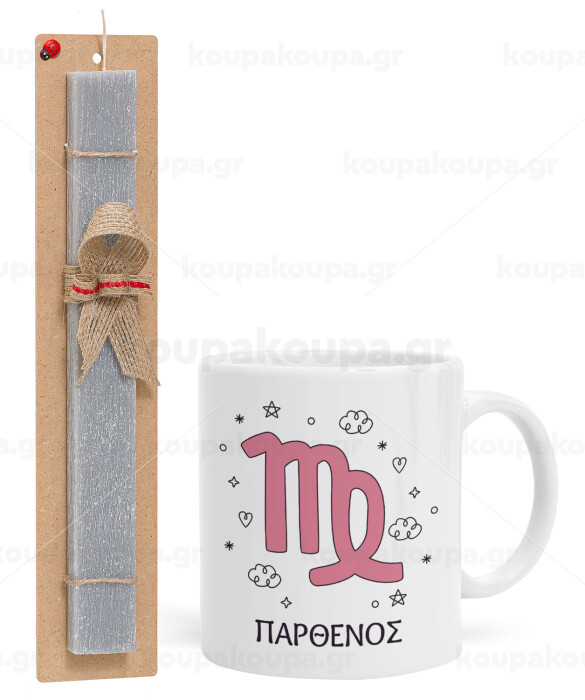Ζώδια Παρθένος, Easter Set, Ceramic Cup (330ml) & Easter aromatic flat candle (30cm) (GRAY)