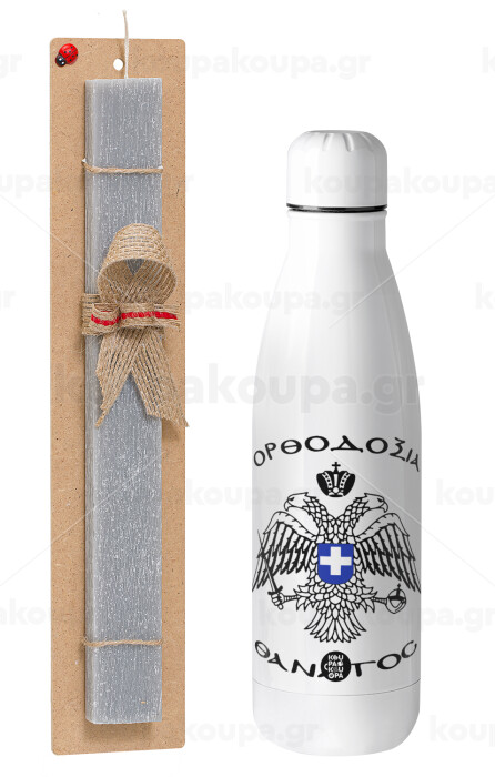 Ορθοδοξία ή Θάνατος, Easter Set, metallic stainless thermos bottle (500ml) & scented flat Easter candle (30cm) (GRAY)
