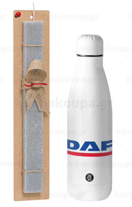 DAF, Easter Set, metallic stainless thermos bottle (500ml) & scented flat Easter candle (30cm) (GRAY)