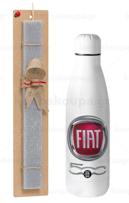 FIAT 500, Easter Set, metallic stainless thermos bottle (500ml) & scented flat Easter candle (30cm) (GRAY)