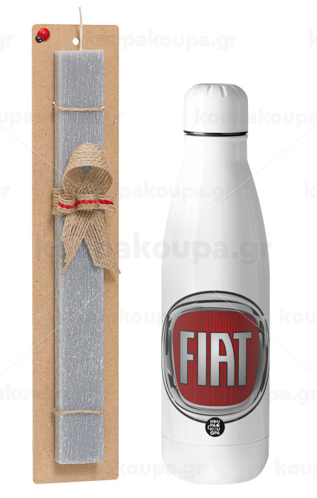 FIAT, Easter Set, metallic stainless thermos bottle (500ml) & scented flat Easter candle (30cm) (GRAY)