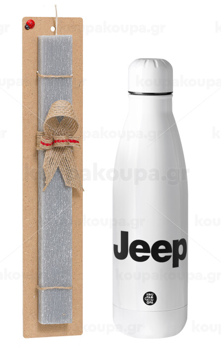 Jeep, Easter Set, metallic stainless thermos bottle (500ml) & scented flat Easter candle (30cm) (GRAY)