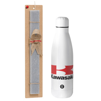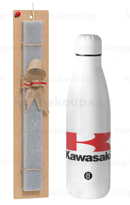 Kawasaki, Easter Set, metallic stainless thermos bottle (500ml) & scented flat Easter candle (30cm) (GRAY)