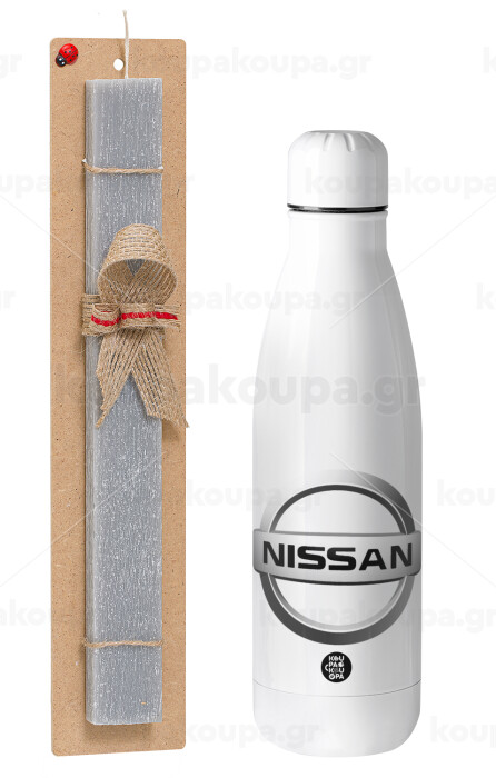 nissan, Easter Set, metallic stainless thermos bottle (500ml) & scented flat Easter candle (30cm) (GRAY)