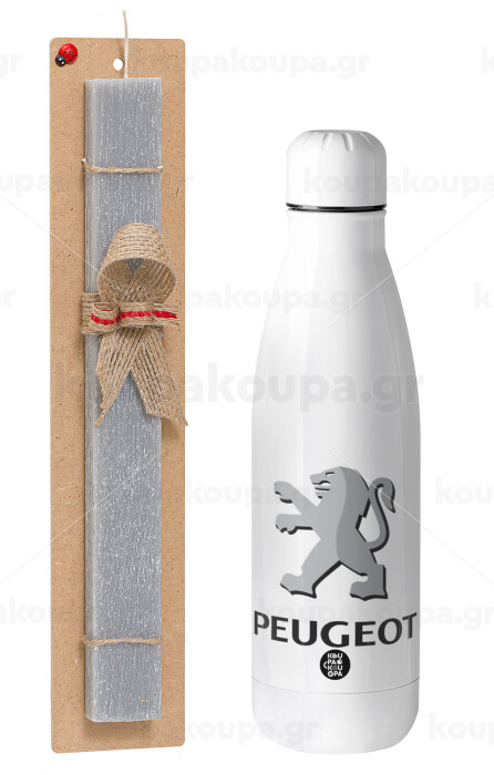 Peugeot, Easter Set, metallic stainless thermos bottle (500ml) & scented flat Easter candle (30cm) (GRAY)