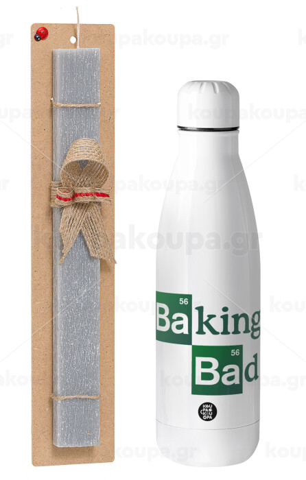 Baking Bad, Easter Set, metallic stainless thermos bottle (500ml) & scented flat Easter candle (30cm) (GRAY)
