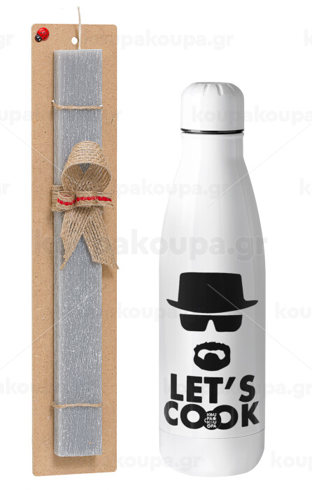Let's cook, Easter Set, metallic stainless thermos bottle (500ml) & scented flat Easter candle (30cm) (GRAY)