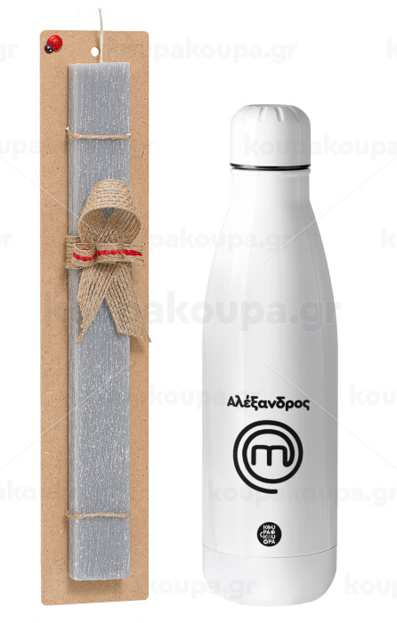 Master Chef Greece, Easter Set, metallic stainless thermos bottle (500ml) & scented flat Easter candle (30cm) (GRAY)