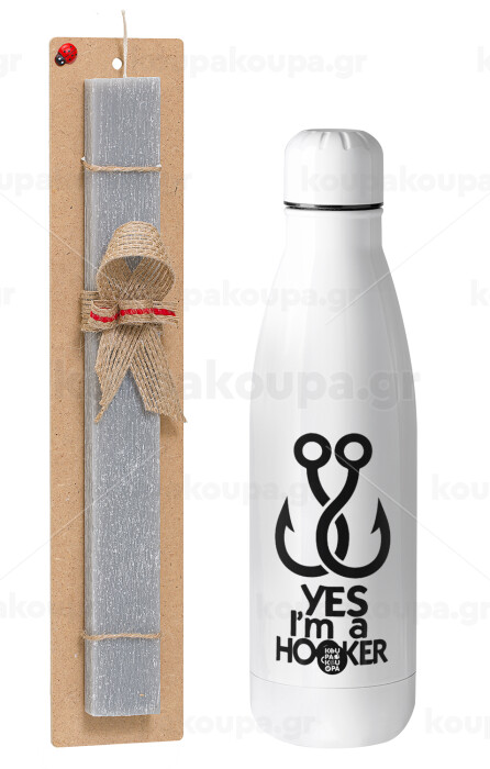 Yes i am Hooker, Easter Set, metallic stainless thermos bottle (500ml) & scented flat Easter candle (30cm) (GRAY)
