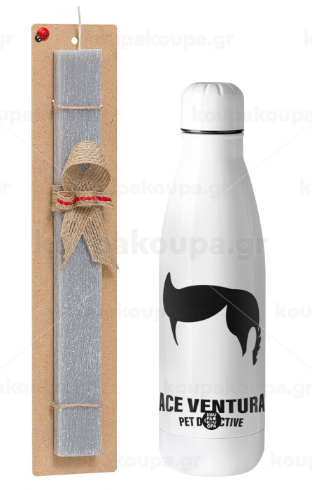 Ace Ventura Pet Detective, Easter Set, metallic stainless thermos bottle (500ml) & scented flat Easter candle (30cm) (GRAY)