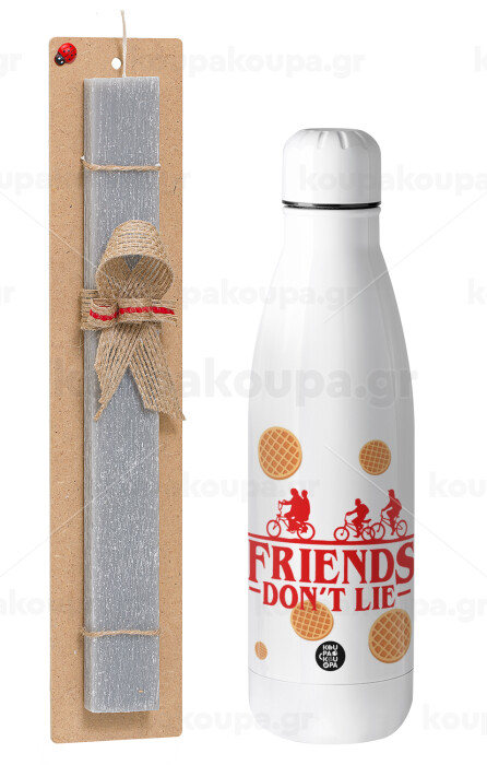 Friends Don't Lie, Stranger Things, Easter Set, metallic stainless thermos bottle (500ml) & scented flat Easter candle (30cm) (GRAY)