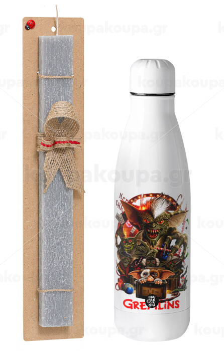Gremlins, Easter Set, metallic stainless thermos bottle (500ml) & scented flat Easter candle (30cm) (GRAY)