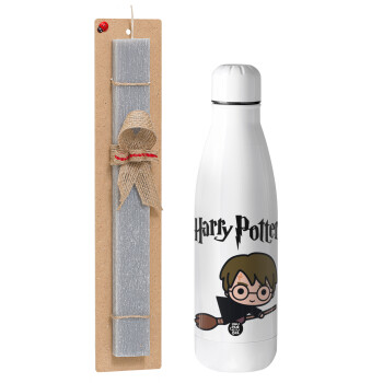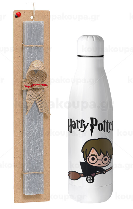 Harry potter kid, Easter Set, metallic stainless thermos bottle (500ml) & scented flat Easter candle (30cm) (GRAY)
