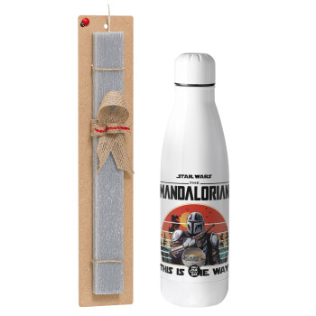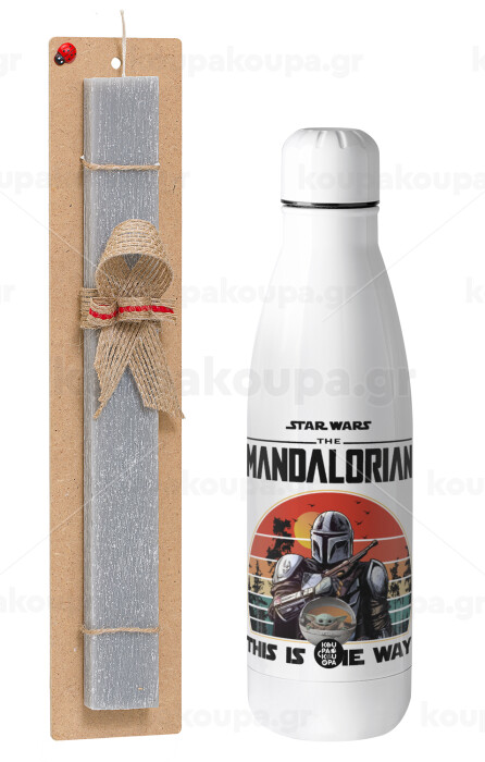 Mandalorian, Easter Set, metallic stainless thermos bottle (500ml) & scented flat Easter candle (30cm) (GRAY)