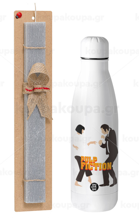 Pulp Fiction dancing, Easter Set, metallic stainless thermos bottle (500ml) & scented flat Easter candle (30cm) (GRAY)