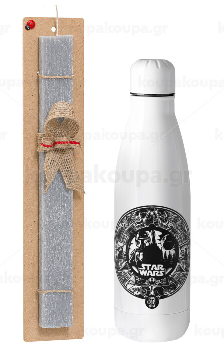 Star Wars Disk, Easter Set, metallic stainless thermos bottle (500ml) & scented flat Easter candle (30cm) (GRAY)
