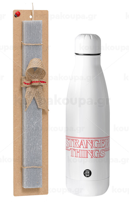 Stranger Things Logo, Easter Set, metallic stainless thermos bottle (500ml) & scented flat Easter candle (30cm) (GRAY)
