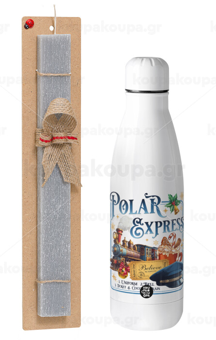 The Polar Express, Easter Set, metallic stainless thermos bottle (500ml) & scented flat Easter candle (30cm) (GRAY)