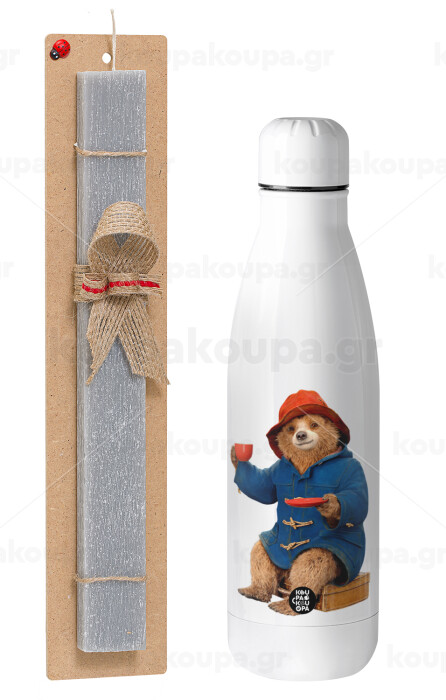 Αρκουδάκι Πάντινγκτον, Easter Set, metallic stainless thermos bottle (500ml) & scented flat Easter candle (30cm) (GRAY)
