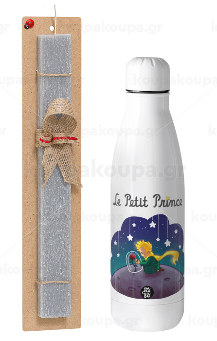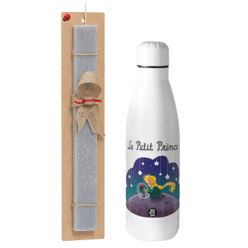 Little prince, Easter Set, metallic stainless thermos bottle (500ml) & scented flat Easter candle (30cm) (GRAY)