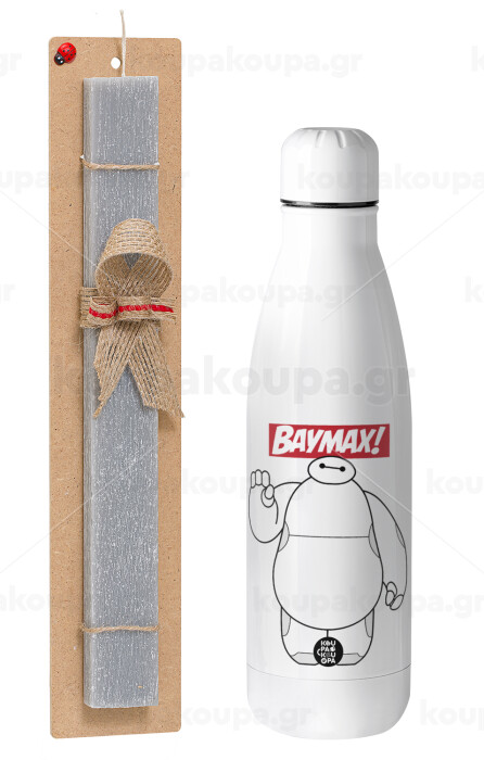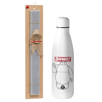 Baymax hi, Easter Set, metallic stainless thermos bottle (500ml) & scented flat Easter candle (30cm) (GRAY)
