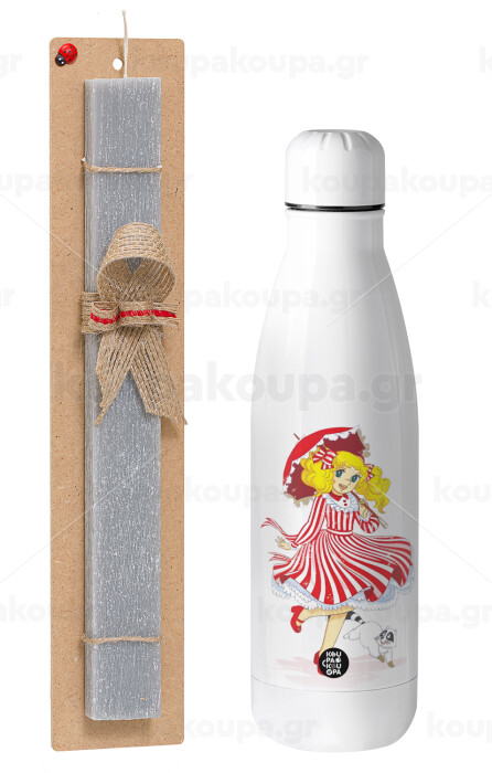 Candy, Easter Set, metallic stainless thermos bottle (500ml) & scented flat Easter candle (30cm) (GRAY)