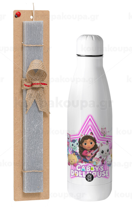 Gabby Dollhouse, Easter Set, metallic stainless thermos bottle (500ml) & scented flat Easter candle (30cm) (GRAY)