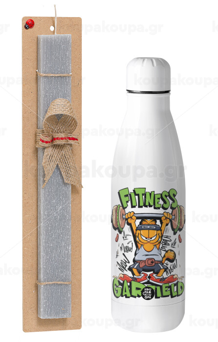 Garfield Fitness, Easter Set, metallic stainless thermos bottle (500ml) & scented flat Easter candle (30cm) (GRAY)