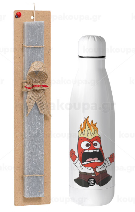 Inside Out Angry, Easter Set, metallic stainless thermos bottle (500ml) & scented flat Easter candle (30cm) (GRAY)