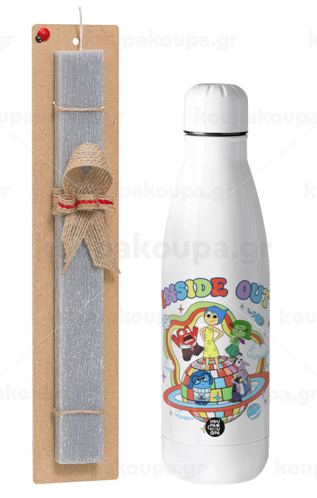 Inside Out, Easter Set, metallic stainless thermos bottle (500ml) & scented flat Easter candle (30cm) (GRAY)