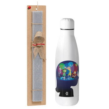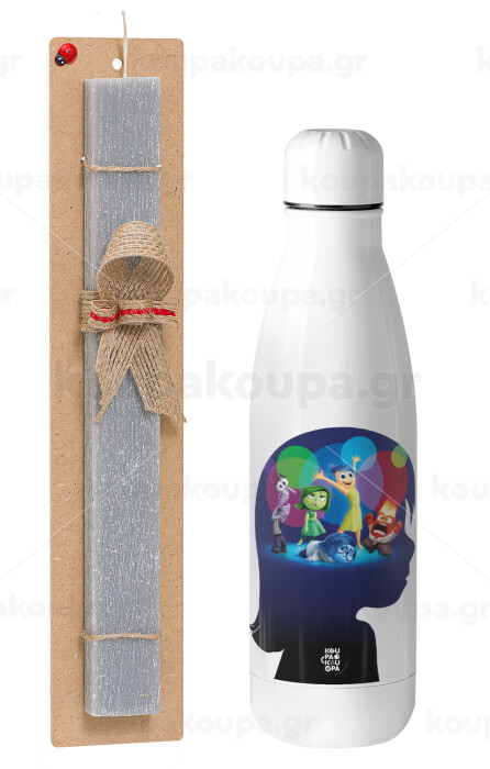 Τα Μυαλά που Κουβαλάς, Easter Set, metallic stainless thermos bottle (500ml) & scented flat Easter candle (30cm) (GRAY)