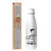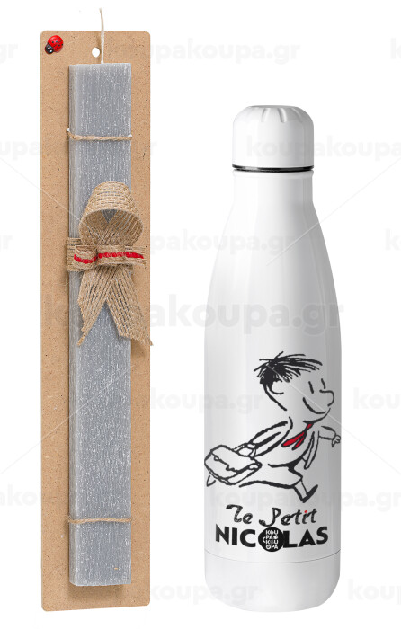 Le Petit Nicolas, Easter Set, metallic stainless thermos bottle (500ml) & scented flat Easter candle (30cm) (GRAY)