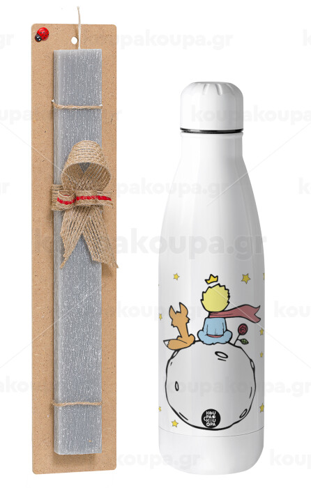Little prince, Easter Set, metallic stainless thermos bottle (500ml) & scented flat Easter candle (30cm) (GRAY)