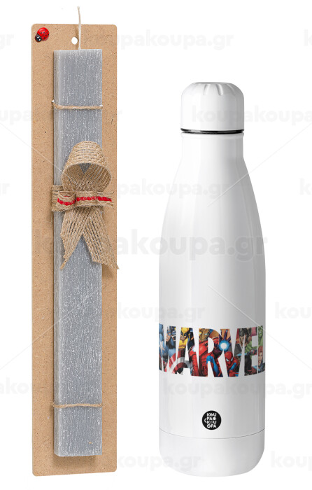 MARVEL characters, Easter Set, metallic stainless thermos bottle (500ml) & scented flat Easter candle (30cm) (GRAY)