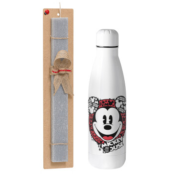 Mickey Mouse, Easter Set, metallic stainless thermos bottle (500ml) & scented flat Easter candle (30cm) (GRAY)