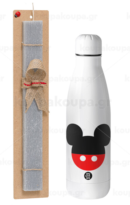 Mickey head, Easter Set, metallic stainless thermos bottle (500ml) & scented flat Easter candle (30cm) (GRAY)