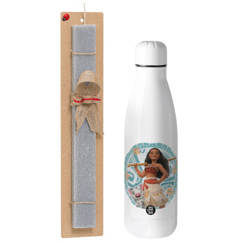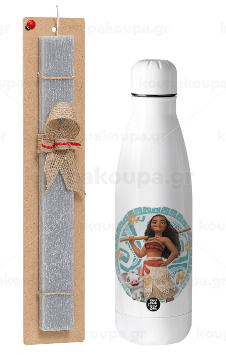 Moana, Easter Set, metallic stainless thermos bottle (500ml) & scented flat Easter candle (30cm) (GRAY)