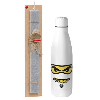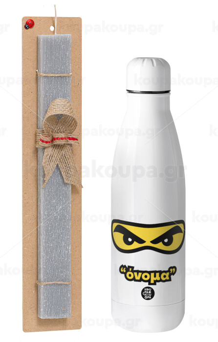 Ninja Eyes με όνομα, Easter Set, metallic stainless thermos bottle (500ml) & scented flat Easter candle (30cm) (GRAY)